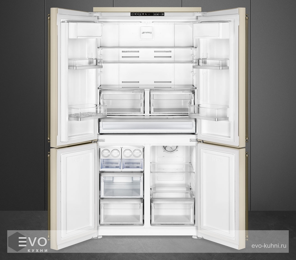 Холодильник Smeg FQ60CPO5 – двухкамерный холодильник выполнен в бежемов цвете с латунной фурнитурой. При помощи LED-дисплея можно быстро и комфортно настроить все необходимые параметры работы прибора. Система автоматической разморозки No-Frost освобождает ваше личное время и делает работу с холодильником намного комфортнее.