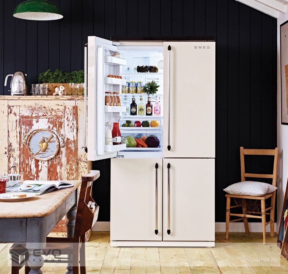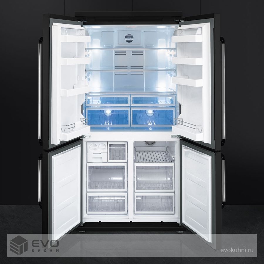 Для полного выдвижения внутренних ящиков необходимо открытие дверей холодильника минимум на 120 градусов (левая и правая дверцы – 261 мм)
