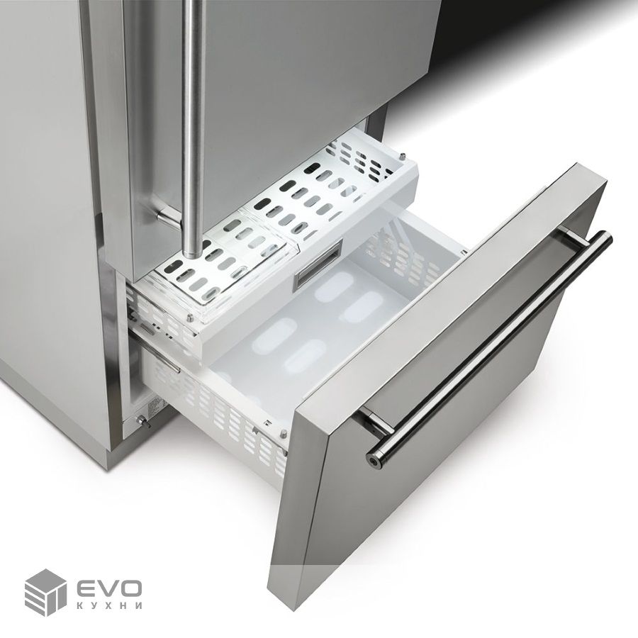 - Тип ящика для овощей и фруктов: на скользящих направляющих