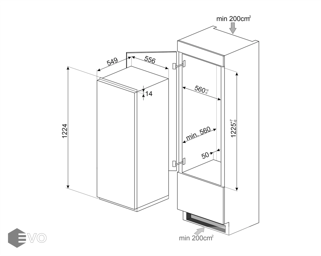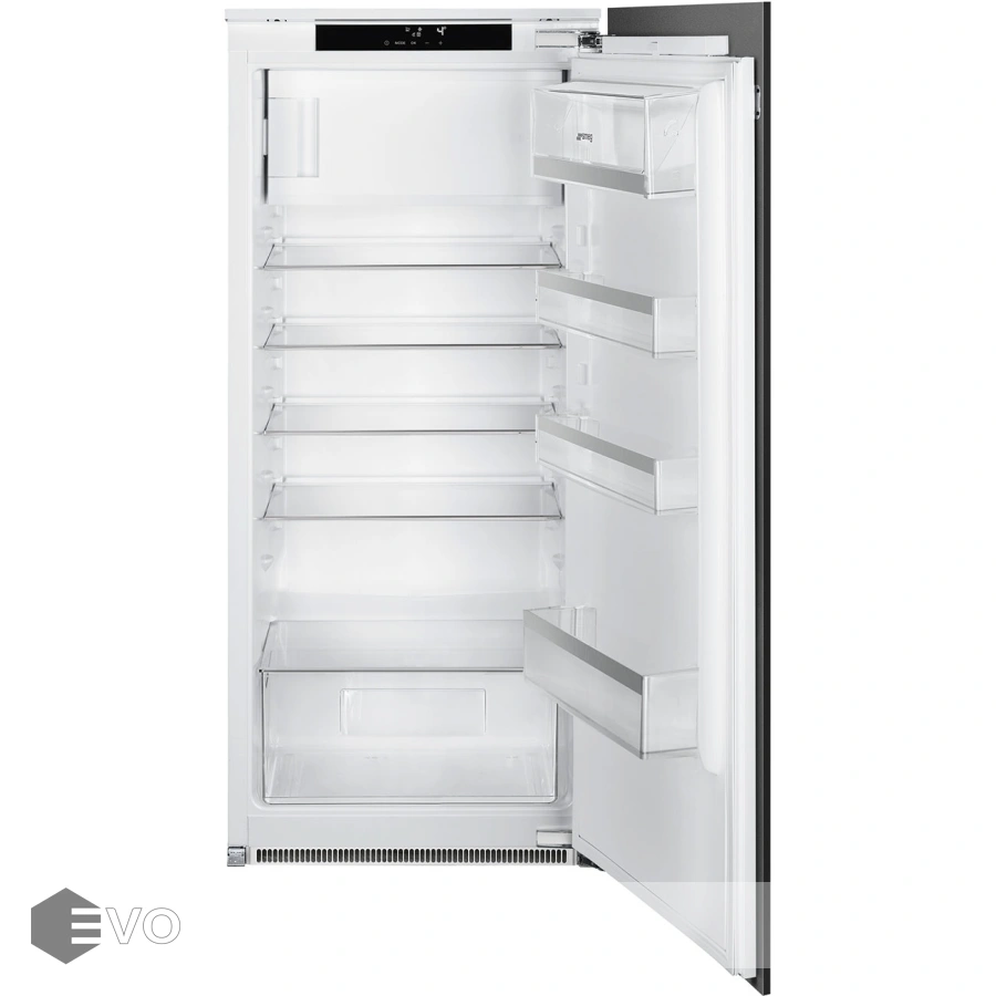 Холодильник Smeg S8C124DE – встраиваемый однокамерный холодильник с верхней морозильной камерой оборудован удобным управлением при помощи сенсорного дисплея, что обеспечивает быструю и точную настройку всех необходимых параметров работы. 4 регулируемых полки позволяют комфортно подстраивать внутреннее пространство под используемую посуду.