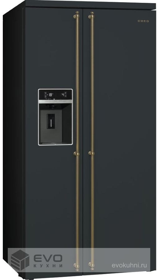 Холодильник Smeg SBS8004AO – двухкамерный Side-by-side холодильник выполнен в цвете антрацит с латунной фурнитурой. При помощи LED-дисплея можно быстро и комфортно настроить все необходимые параметры работы прибора. Система автоматической разморозки No-Frost освобождает ваше личное время и делает работу с холодильником намного комфортнее.