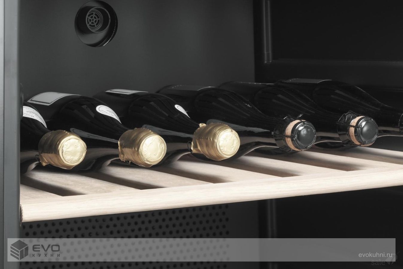 Одновременное хранение 115 бутылок по 0,75 л (198 бутылок с некоторыми снятыми полками)