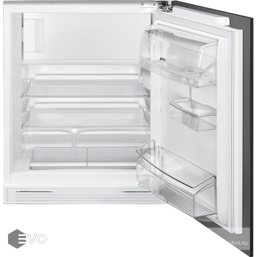Холодильник Smeg UD7122CSP – предназначается для установки под столешницу и может использоваться в гостиницах, барах, студиях, офисах. Жесткое крепление фасада позволяет широко открывать дверцу и способствует общей прочности конструкции. Модель с одной дверцей имеет общий объем 117 литра, в верхней части расположена небольшая морозильная камера объемом 17 литров с ручным размораживанием. Подобная конструкция позволяет сохранить продукты в замороженном виде на протяжении 13 часов после отключения электропитания.