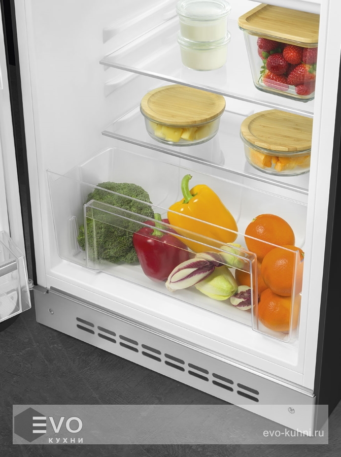 Холодильник Smeg FAB10LBL5 – модель в стиле 50-х годов, отдельно стоящая, поэтому нужно тщательно подобрать место для ее размещения. Система охлаждения этого холодильника — статическая, при внезапно отключившемся электричестве морозильник сохраняет температуру на 9 часов. Благодаря компактным размерам, подойдет даже маленькой кухне. Холодильник с морозильником обладает всеми опциями, которые чаще всего ищут и выбирают покупатели. Стандартная конфигурация — универсальный вариант для любой квартиры.