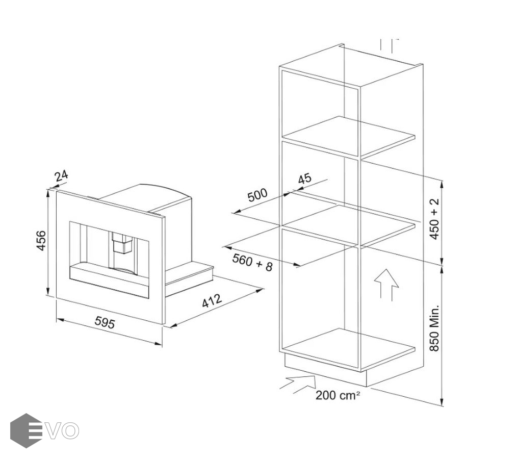 Размеры встраивания (ВхШхГ), мм: 568х452х545