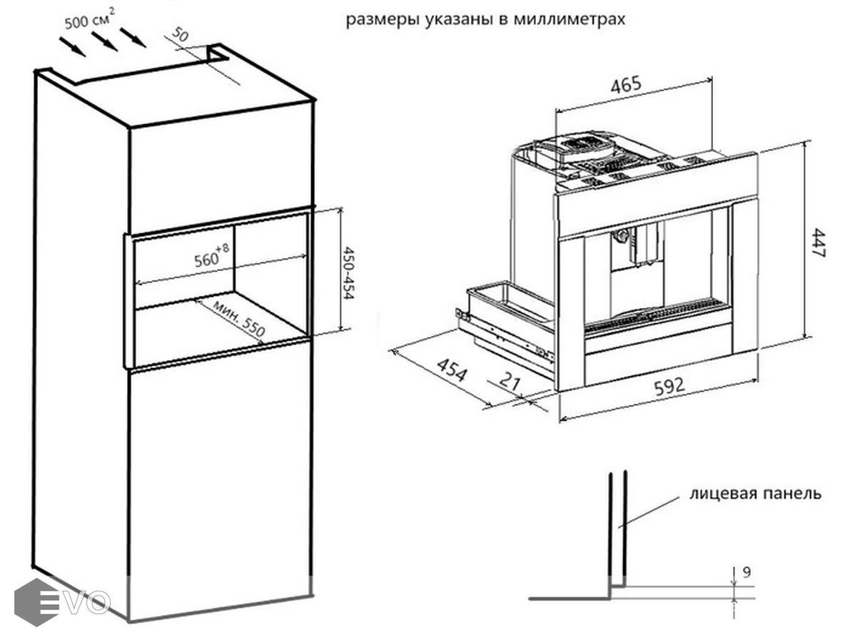 | Размеры встраивания (ВхШхГ), мм: | 454х560х550 |