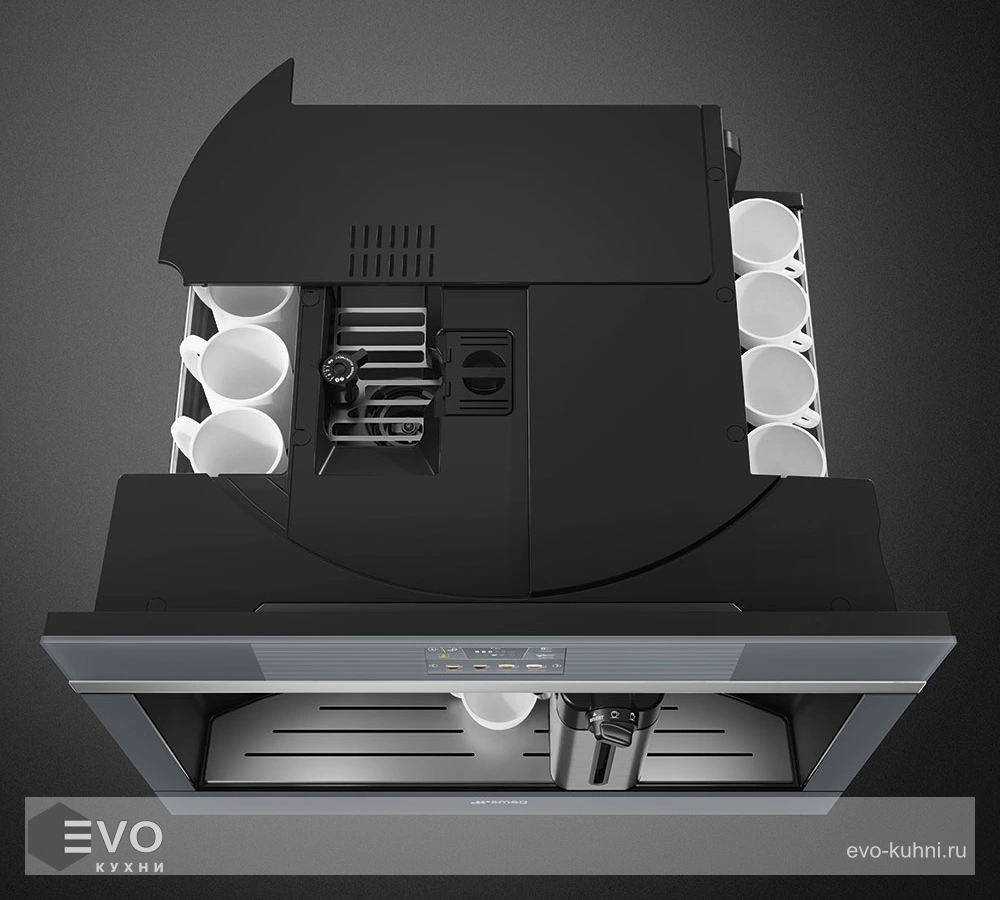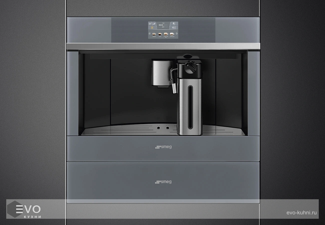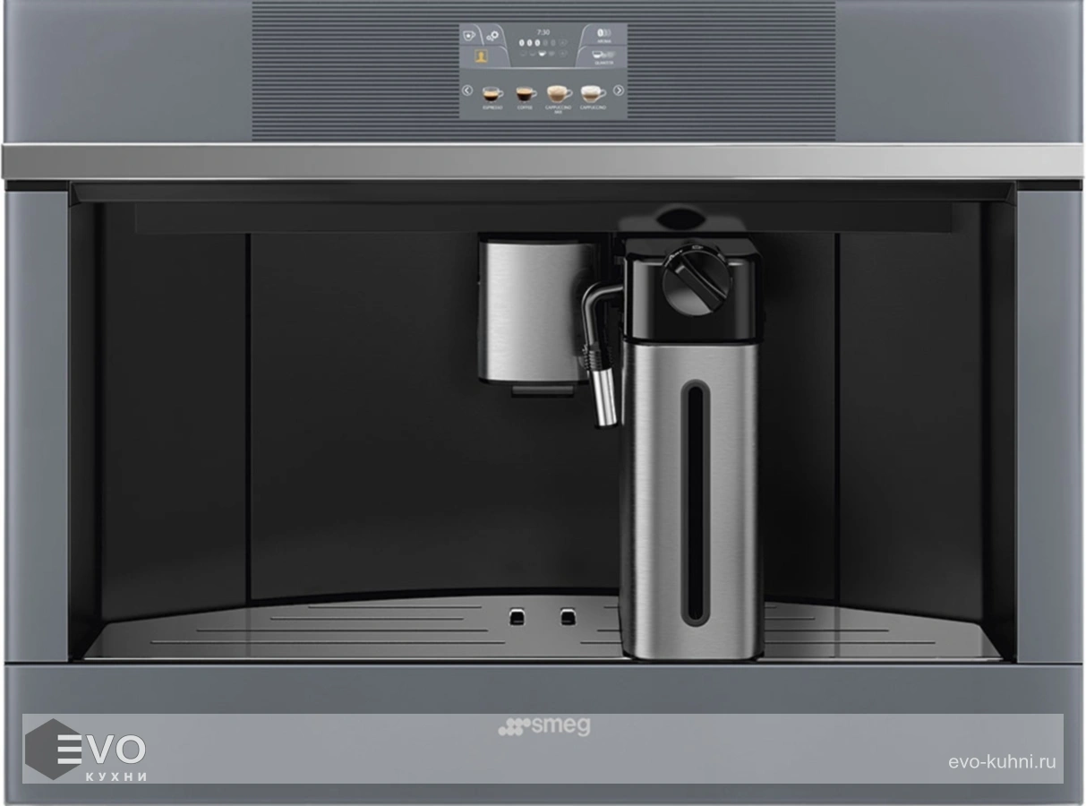 Автоматическая кофемашина Smeg CMS4104S – кофемашина встраиваемого типа. Модель снабжена многоязычным LСD-дисплеем, поворотными переключателями с подсветкой, кнопками управления. Режим энергосбережения и очистки от накипи расширяют функционал прибора. Основные функции это - автоматическое приготовление капучино, регулировка помола и очистка от накипи.