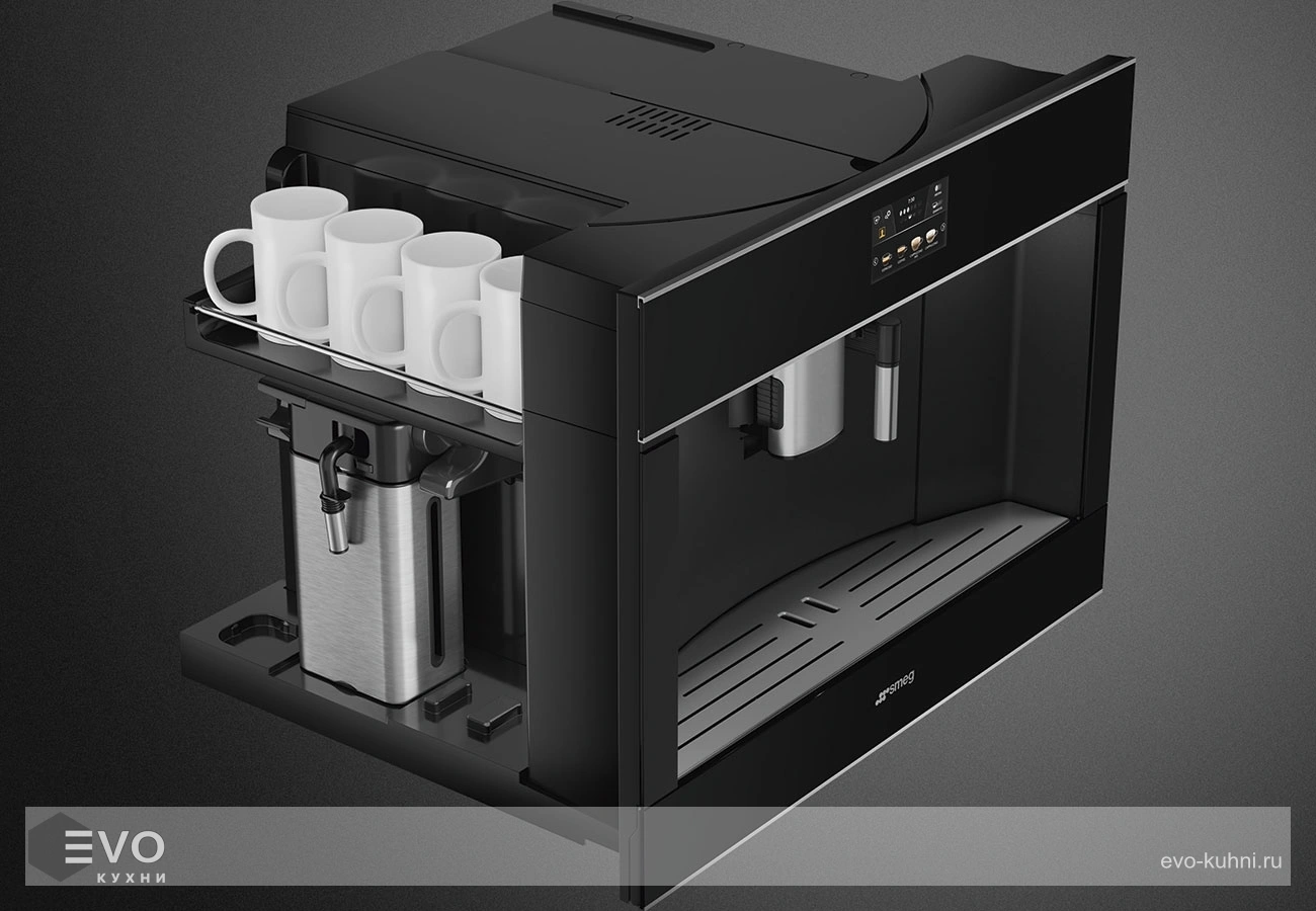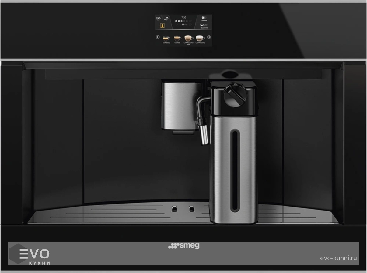Автоматическая кофемашина Smeg CMS4604NX – кофемашина работает на зерновом и молотом кофе. Вы можете приготовить с ее помощью 13 напитков: стандартные эспрессо, капучино, американо и другие, а также необычные допио, флэт уайт, ристретто. Кроме того, она подает пар и горячую воду для заваривания чая. Удобный капучинатор, съемный кувшин для молока делают использование техники приятнее и проще. Есть специальная программа для очистки от накипи, система сама производит ополаскивание, чтобы внутри не оставалось грязи.