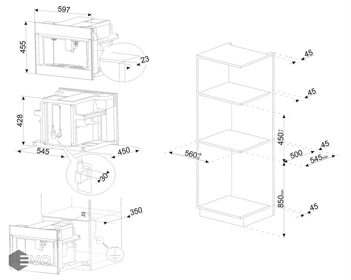- Тип: встраиваемая автоматическая кофемашина