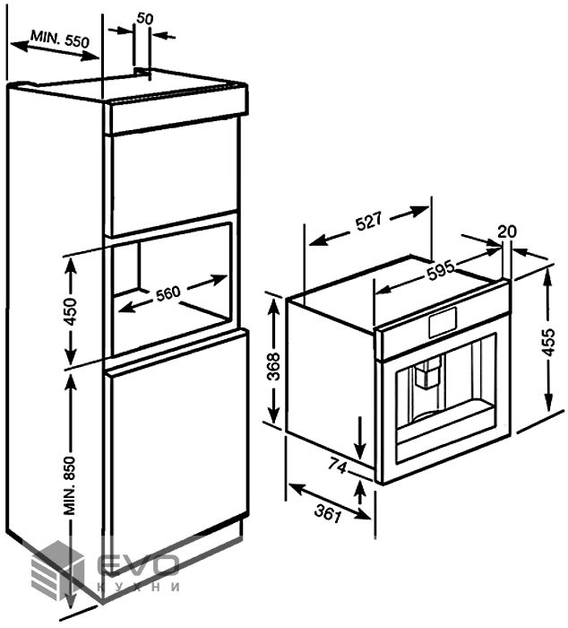 При использовании зерен выбирается степень помола. Автоматическое программирование времени включения машины позволяет отложить старт на удобное время. Если прибор не используется в течение часа, он автоматически переключается в режим энергосбережения Stand-by. Контейнер для воды объемом 1,8 литра и для зерен легко доступны, они выдвигаются на телескопических направляющих.