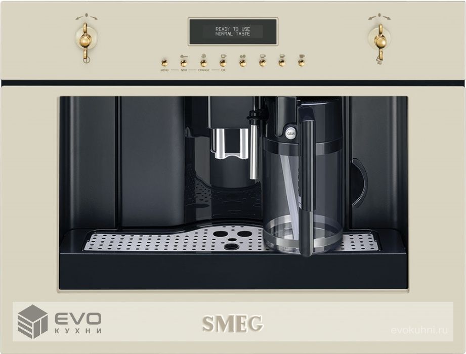 Автоматическая кофемашина Smeg CMS8451P – встраиваемая в колонну автоматическая кофемашина с латунной фурнитурой предназначается для работы с молотым и зерновым кофе. Модель отличает горизонтальная панель управления с цветным многоязычным LСD-дисплеем и поворотными переключателями в стиле ретро. Пользователь может приготовить себе напиток в соответствии со своими предпочтениями: выбрать один из трех уровней регулировки количества кофе на чашку и задать уровень крепости напитка от очень слабого до крепкого и очень крепкого.