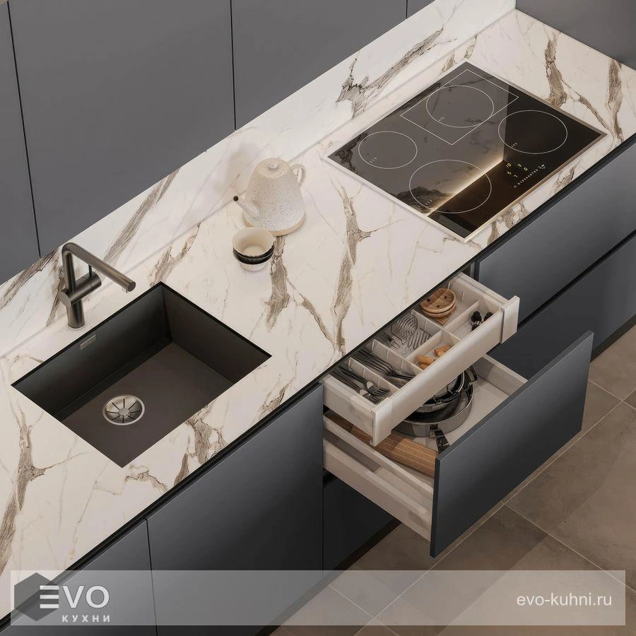 | Особенности: | Без ручек Встроенные Интегрированные ручки Под потолок С встроенной техникой |