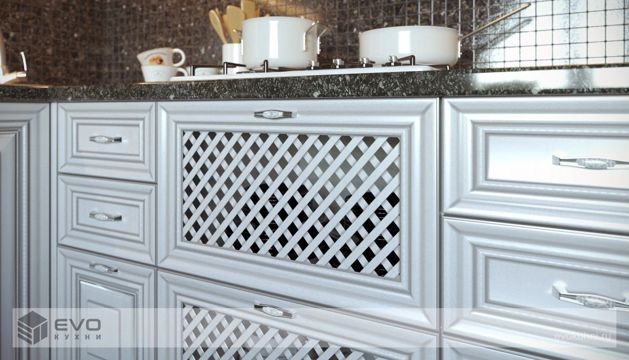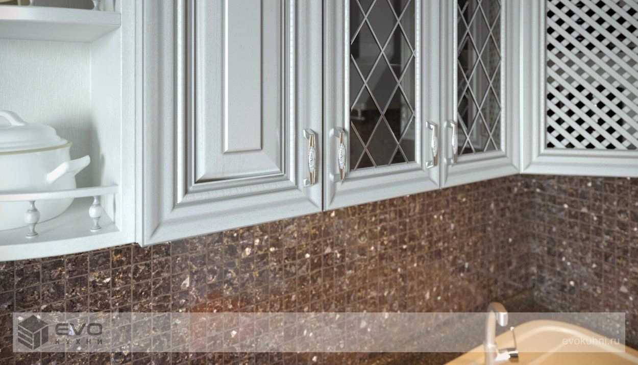 Дизайн кухни отличается изяществом, роскошью, элегантностью. Магия Италии прослеживается в каждом элементе интерьера кухни «Инфинити». Изящные формы фасадов и искусная резьба декоративных элементов преображают даже дизайн небольшой кухни и превращают интерьер в сказку. Светлый цвет элементов коллекции зрительно увеличивает пространство, а широкий выбор декоративных элементов дает, практически, неограниченные возможности для самовыражения.