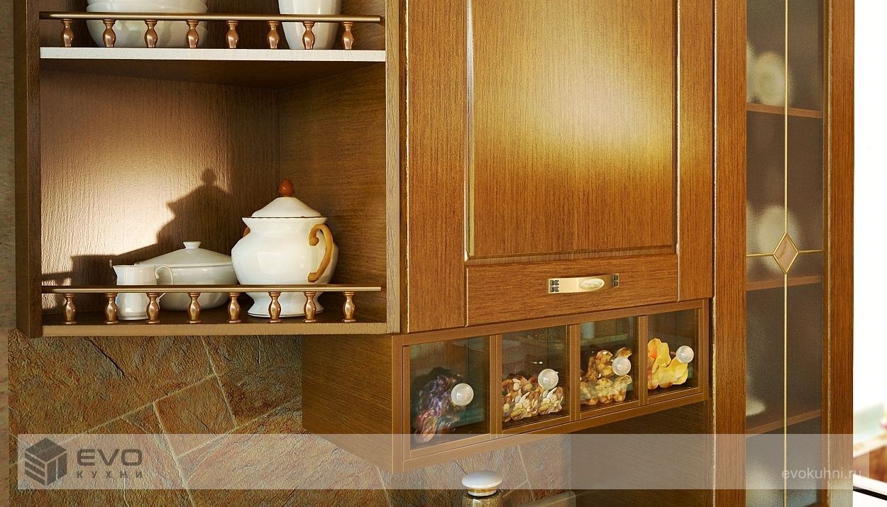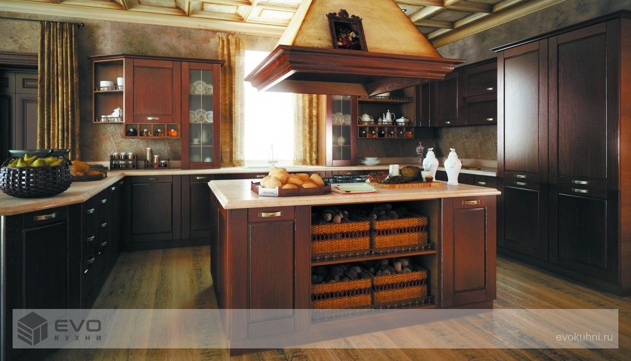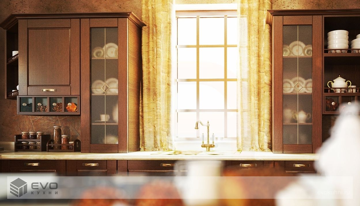 Главной отличительной особенностью гарнитура, его визитной карточкой, является массивная дубовая рамка шириной до 10 см у всех фасадов, а главное традиционная для EVO архитектура фасада – детали рамки стыкуются не под углом 450, а под углом 900, что, бесспорно, позволяет им служить гораздо дольше в отличие от продукции большинства компаний производящих кухни в России. Широкая рамка позволяет максимально эффектно показать богатую структуру специально отобранного дуба, а несколько стандартных тонировок дают возможность подобрать тональность, соответствующую интерьеру Вашей кухни. В отличие от других производителей классических кухонь, EVO позволяет заказывать фасадные панели любых разумных размеров, без привязки к шагу 10, 15 или 20 см.