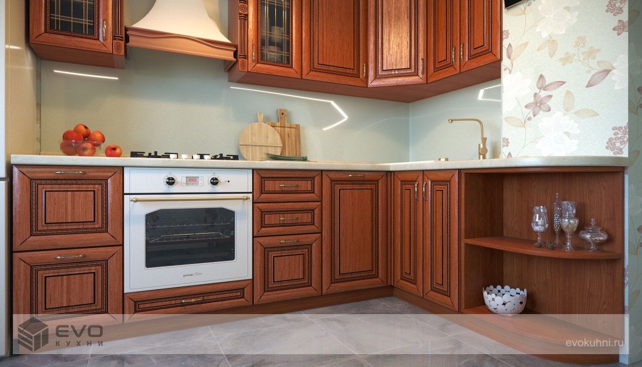 Дерево предоставляет поистине безграничные возможности для воплощения любых дизайнерских решений и в полной мере раскрывает всё изящество классической кухни. Массив Ясеня является олицетворением ненавязчивого шика и утонченной изысканности. Основный шик придает красивая структура фасадов. Помимо всего с множеством декоративных элементов, а также правильно подобранные аксессуары и остальные составляющие кухонного гарнитура, привносящая дополнительный уют в помещение. Натуральное дерево, как ни один другой материал, прекрасно подчеркивает индивидуальность, наличие которой является приоритетной задачей в создании неповторимого интерьера.
