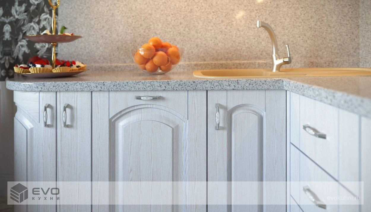 Модель "Биота фасад" - это бюджетный вариант красивой элегантной кухни в классическом стиле из пленочного МДФ. Изысканные изогнутые фасады кухни с эффектом патинирования сделают интерьер еще более уютным. Кухонные гарнитуры из пленочного МДФ производятся исключительно из экологически чистых материалов на современном оборудовании. Поэтому помимо внешней красоты кухни «Биота» отличаются и превосходным качеством, долговечностью.