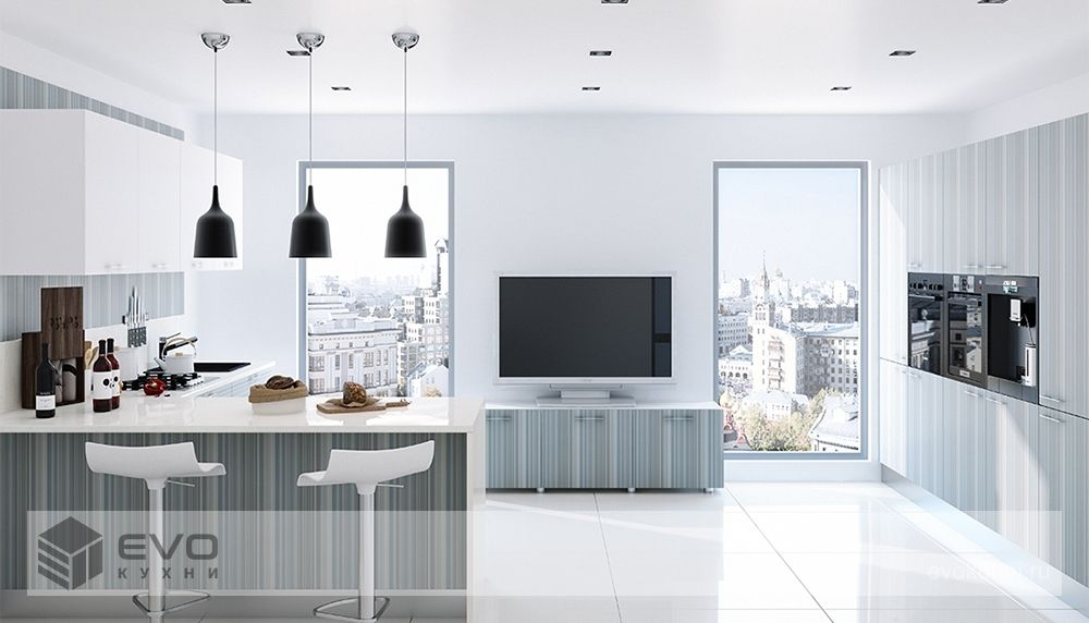 Кухня «Хомо» — ярчайший представитель современного стиля: фасады строгой прямоугольной формы, облицованные матовым, а также глянцевым пластиком, стекло в алюминиевых рамках.