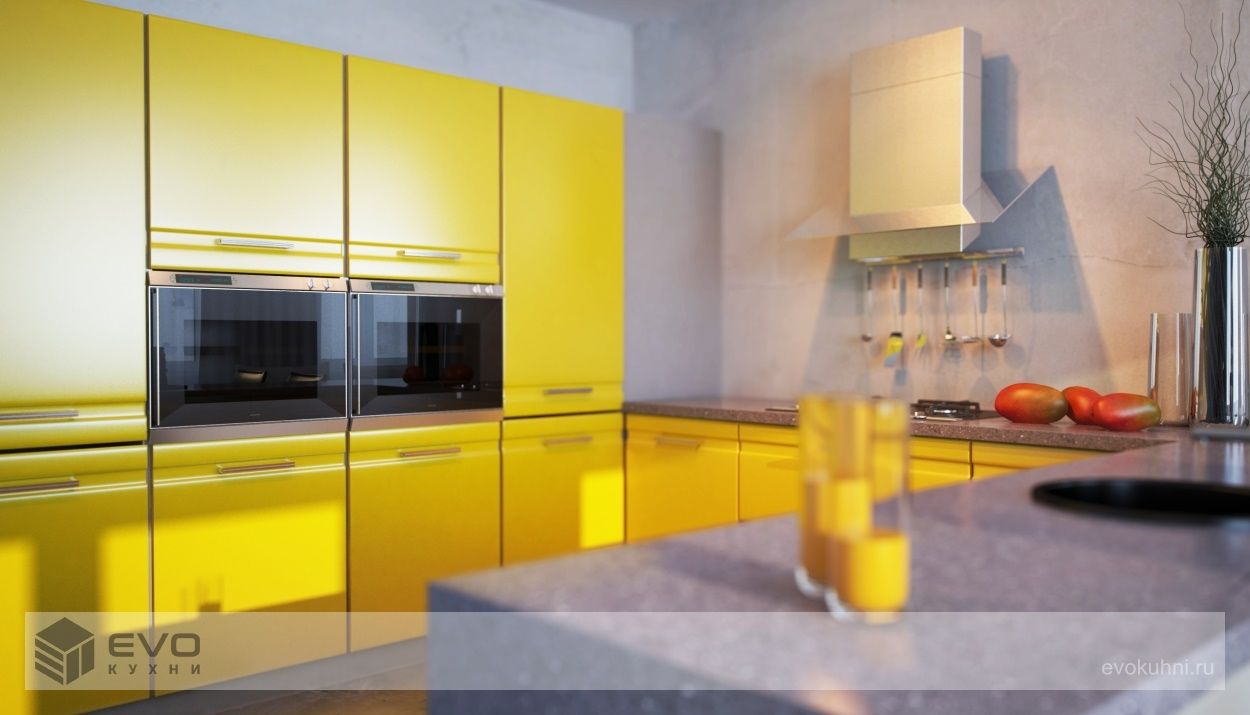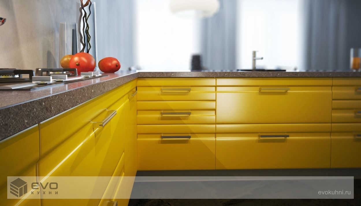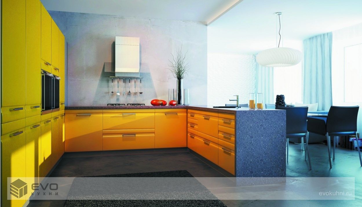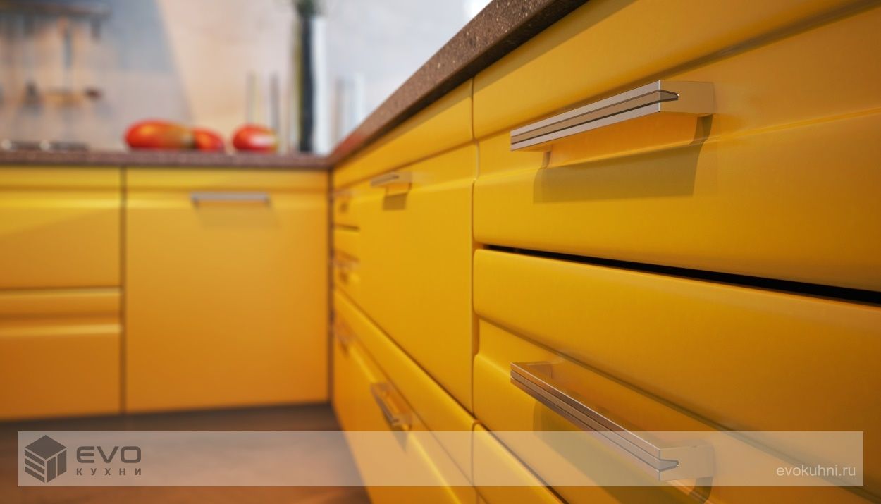 Кухня Mango от компании EVO самая динамичная и традиционно яркая. Если Вам не хватает цвета в окружении, а порой у нас за окном всё выглядит весьма уныло, то гарнитур Mango на кухне будет постоянно дарить вам только хорошее настроение. Оригинальная фрезеровка всех фасадных панелей, сделает Ваш гарнитур не похожим ни на один другой, а небольшой объём стандартного остекления скроет от посторонних глаз всю кухонную утварь. Хотя для придания оригинальности стоит задуматься над тем, чтобы установить большие нестандартные витрины из алюминиевого профиля. Mango это яркое лето и хорошее настроение на Вашей кухне круглый год! Лицевые панели кухни окрашиваются в любой цвет (2500 цветов) и стандартно поставляются в матовом исполнении с двухсторонней окраской. Благодаря специальному защитному покрытию эмаль кухни необычайно устойчива к механическому воздействию.