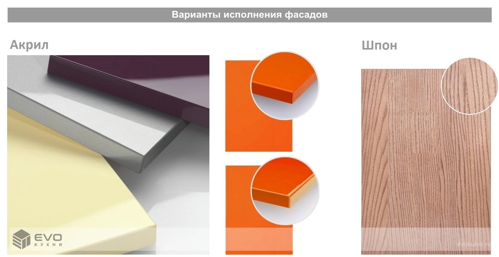 | Фасады: | ЛДСП МДФ Пластик Акрил Alvic / УФ лак Шпон |