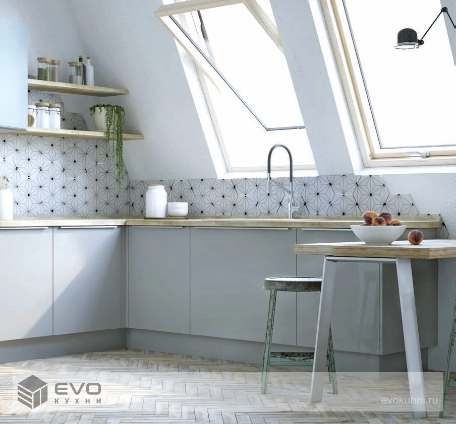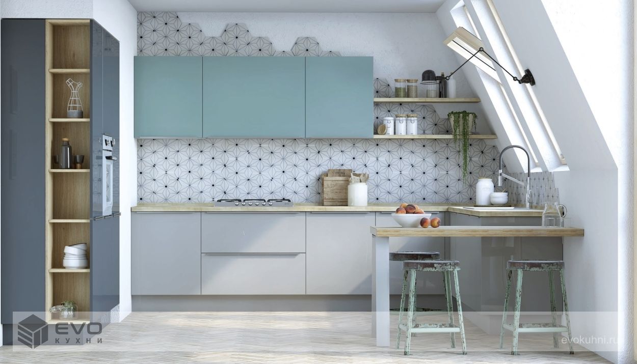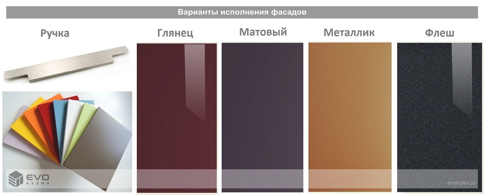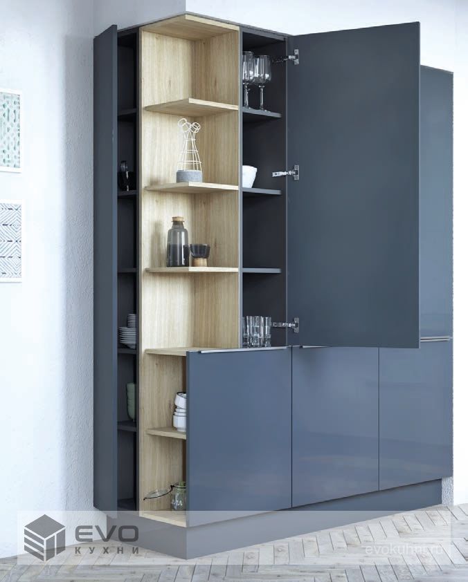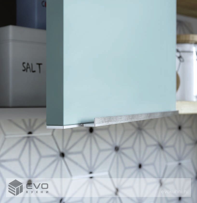 Данная модель идеально впишется в интерьер небольшой квартиры. Модные оттенки крашеных фасадов придают невероятную теплоту помещению. Эргономично расположенные боковые полки, интегрированные в пенал, являются эффектным акцентом, что превращает обыкновенную кухню в нечто особенное.