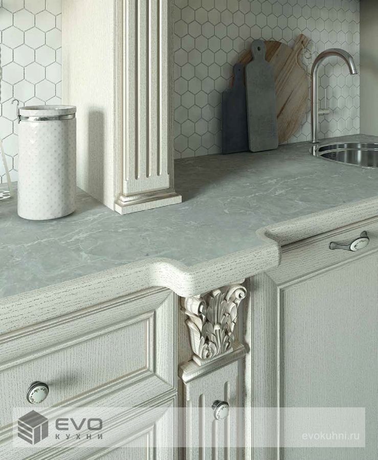 - Столешница: 38мм, пластик HPL, цвет Мрамор Вальмасино Светло-серый