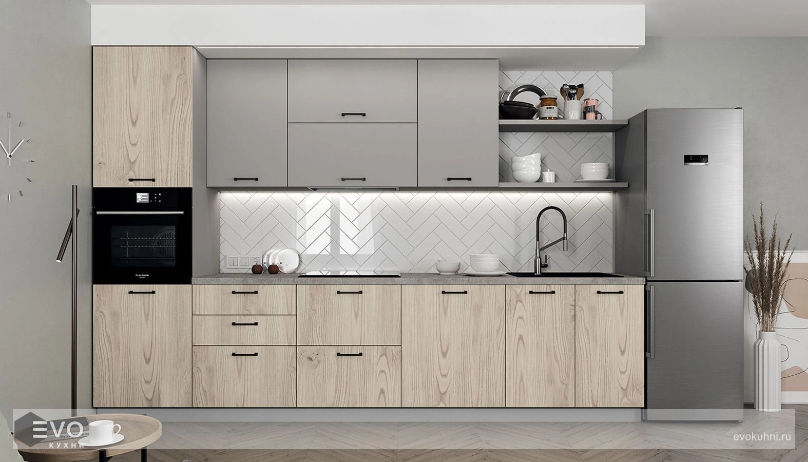 Фасады Ламинированная ДСП, цвет Каштан Песочный / Серый Пыльный