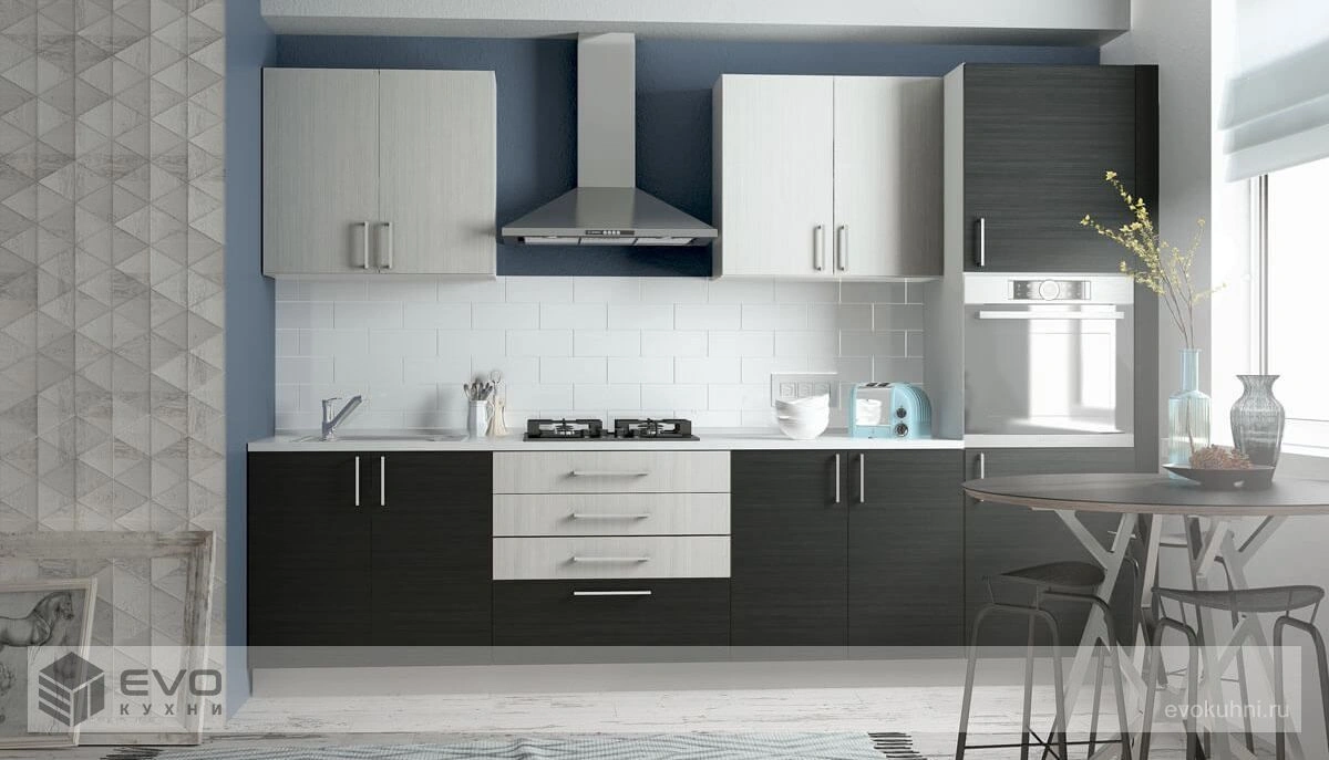 Современное ламинированное ДСП – это качественный и безопасный материал, который мы оклеиваем кромкой ПВХ, что делает кухню из него долговечной при невысоких затратах. Выбирая из порядка 30 расцветок, вы можете создать свою оптимальную комбинацию фасадов, как из модных, так и из классических цветов и фактур.