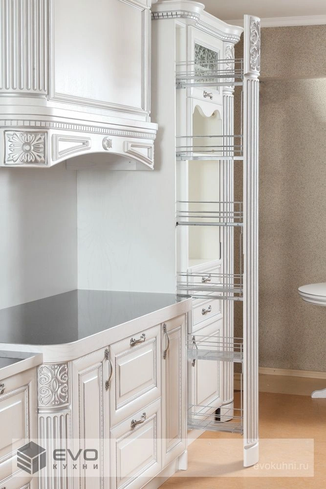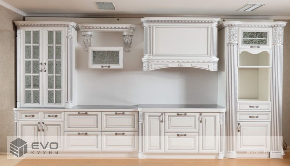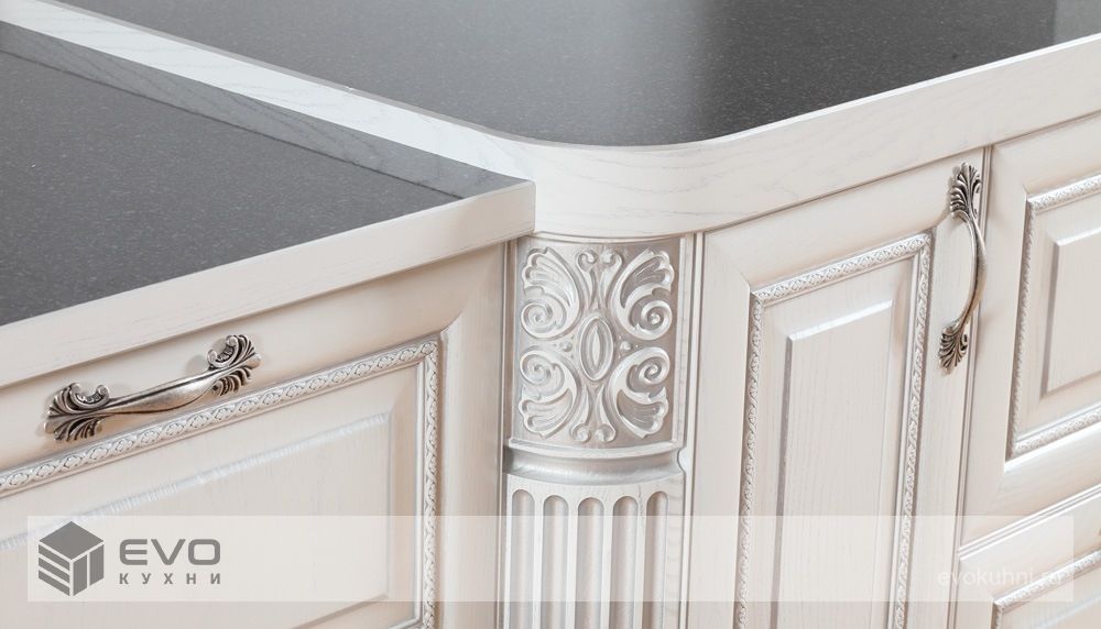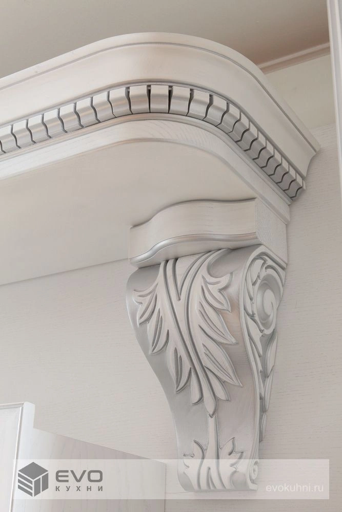 Дерево предоставляет поистине безграничные возможности для воплощения любых дизайнерских решений и в полной мере раскрывает всё изящество классической кухни. Массив Ясеня является олицетворением ненавязчивого шика и утонченной изысканности. Основный шик придает красивая структура фасадов.