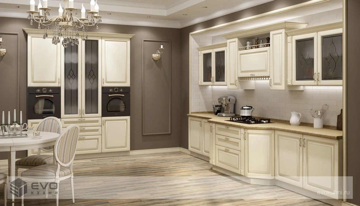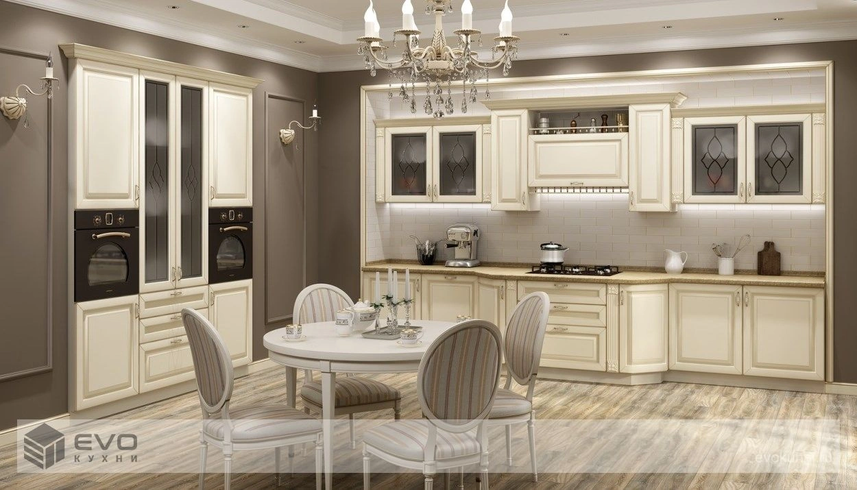 Кухонный гарнитур Valencia, образец современной итальянской классики. Интересная форма фасада, добавление эффекта старения, большой выбор цвета отделки. Казалось бы что ещё нужно? Однако такие кухни наиболее эффектно смотрятся в больших помещениях, поэтому если у Вас небольшая кухня, то рекомендуем переключиться на более демократичную модель, либо на классические кухни из массива дерева. Основа фасада Valencia - традиционная для серии эмаль EVO панель МДФ на которую наносится любой фоновый цвет, а затем в углубления фрезеровки затирается патина золотого, серебряного, бронзового или коричневого цвета.