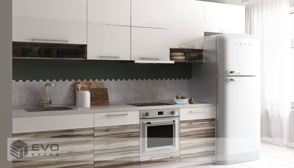 Кухни с фасадами из акрила и ламининрованного ДСП имеют большую популярность не только у потребителей, но и производителей кухонных гарнитуров. Это связано с возможностью использовать при создании моделей самый оригинальный дизайн. При этом купить линейную кухню с данными фасадами стремятся все, кто создает современный интерьер. Акриловые фасады являются инновацией в мире кухонной мебели и изготавливаются по самым новейшим технологиям. Акрил относится к материалам, устойчивым к механическим воздействиям, ультрафиолетовому излучению, химическим средствам, тепловой обработке.