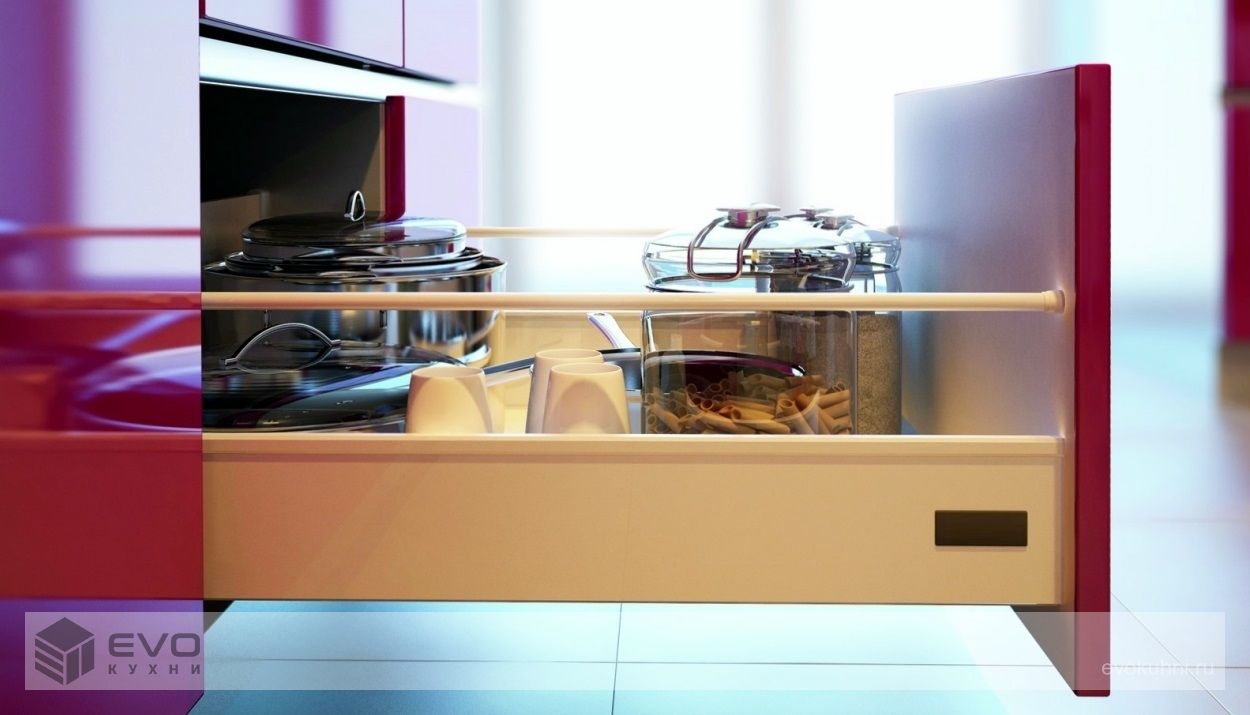 В сочетании с ультрасовременным наполнением выдвижных элементов от немецкой фирмы Hettich, данная модель представляет из себя настоящий европейский продукт самого высокого качества, к тому же максимально удобный в использовании, так как Вы и Ваши дети никогда не получат ушиб от выступающих ручек.