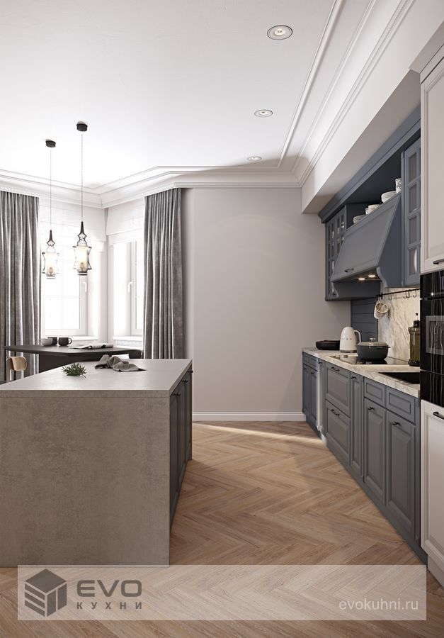 Современное решение для просторных помещений, где кухня становится центром интерьера. Наличие острова позволяет расширить рабочую поверхность и добавить дополнительное место для хранения. Дизайн выполнен в актуальном стиле с акцентом на удобство и эргономику. Материалы устойчивы к нагрузкам и легко очищаются. Такая кухня идеально подходит для тех, кто любит готовить и проводить время в комфортной обстановке.