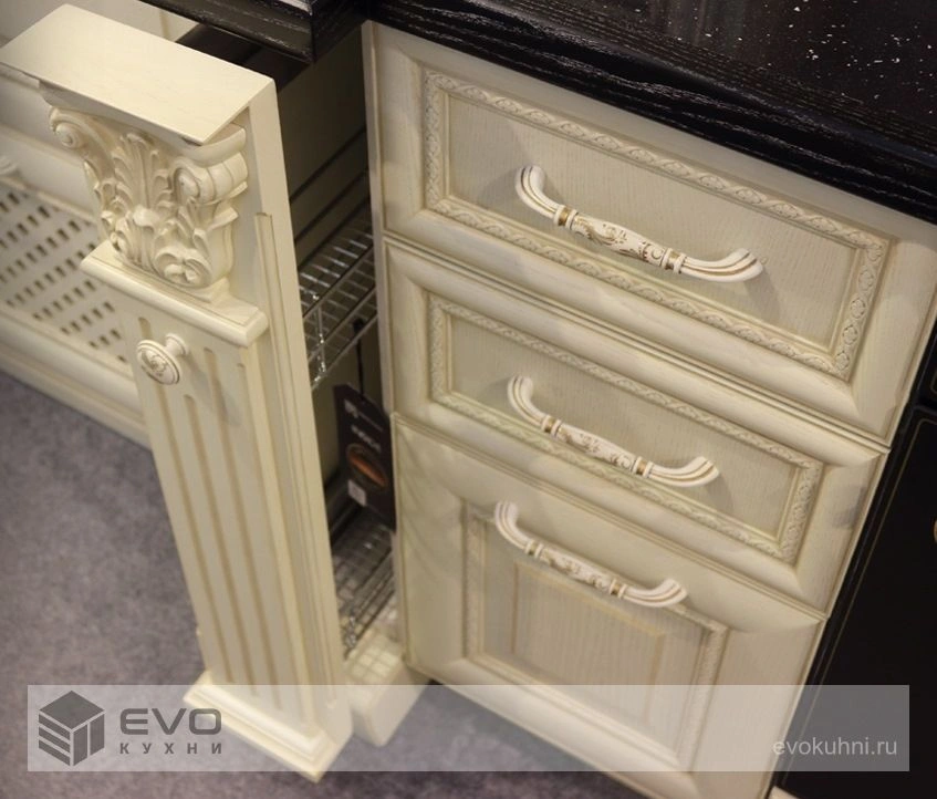 Дерево предоставляет поистине безграничные возможности для воплощения любых дизайнерских решений и в полной мере раскрывает всё изящество классической кухни. Массив Ясеня является олицетворением ненавязчивого шика и утонченной изысканности. Основный шик придает красивая структура фасадов. Помимо всего с множеством декоративных элементов, а также правильно подобранные аксессуары и остальные составляющие кухонного гарнитура, привносящая дополнительный уют в помещение. Натуральное дерево, как ни один другой материал, прекрасно подчеркивает индивидуальность, наличие которой является приоритетной задачей в создании неповторимого интерьера.