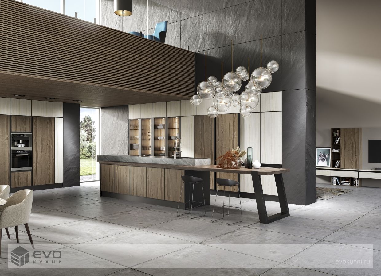 | Особенности: | Без верхних шкафов Встроенные Готовые Интегрированные ручки Под потолок С встроенной техникой |