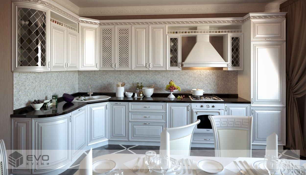 Дизайн кухни отличается изяществом, роскошью, элегантностью. Магия Италии прослеживается в каждом элементе интерьера кухни Бьянко. Изящные формы фасадов и искусная резьба декоративных элементов преображают даже дизайн небольшой кухни и превращают интерьер в сказку. Светлый цвет элементов коллекции зрительно увеличивает пространство, а широкий выбор декоративных элементов дает, практически, неограниченные возможности для самовыражения.