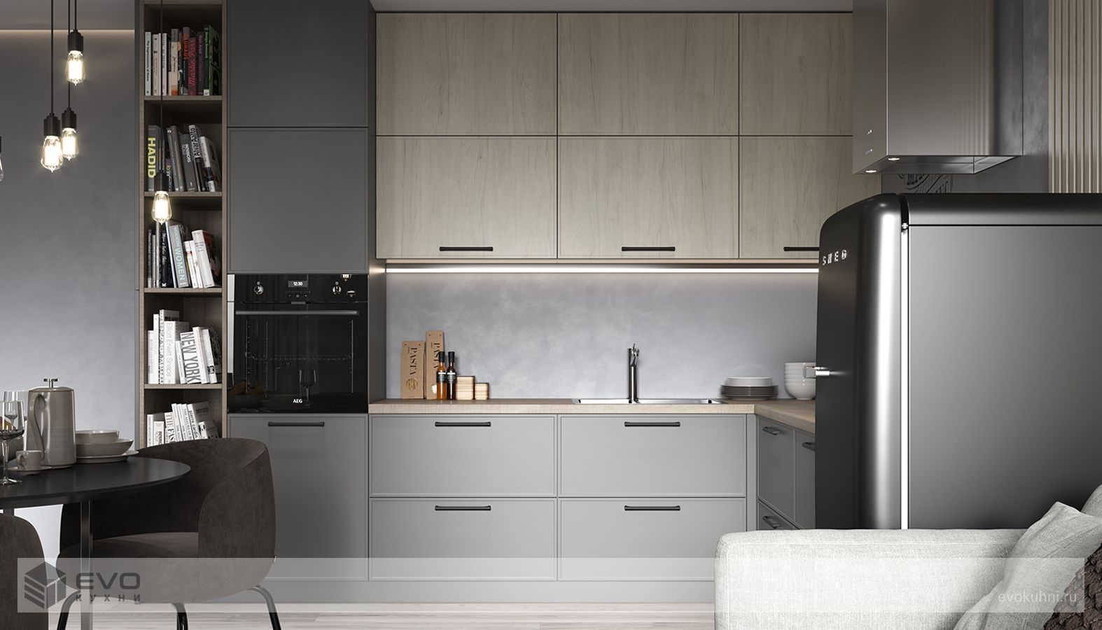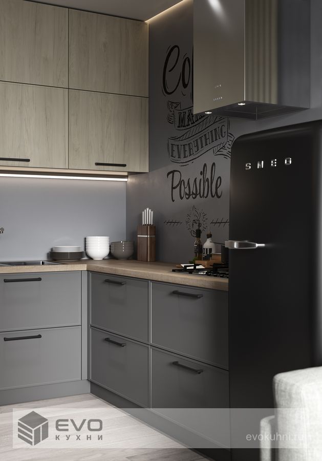 ФАСАДЫ Хаген (МДФ / ПВХ), цвет Оникс Серый / Гикори