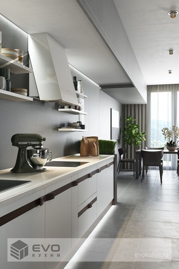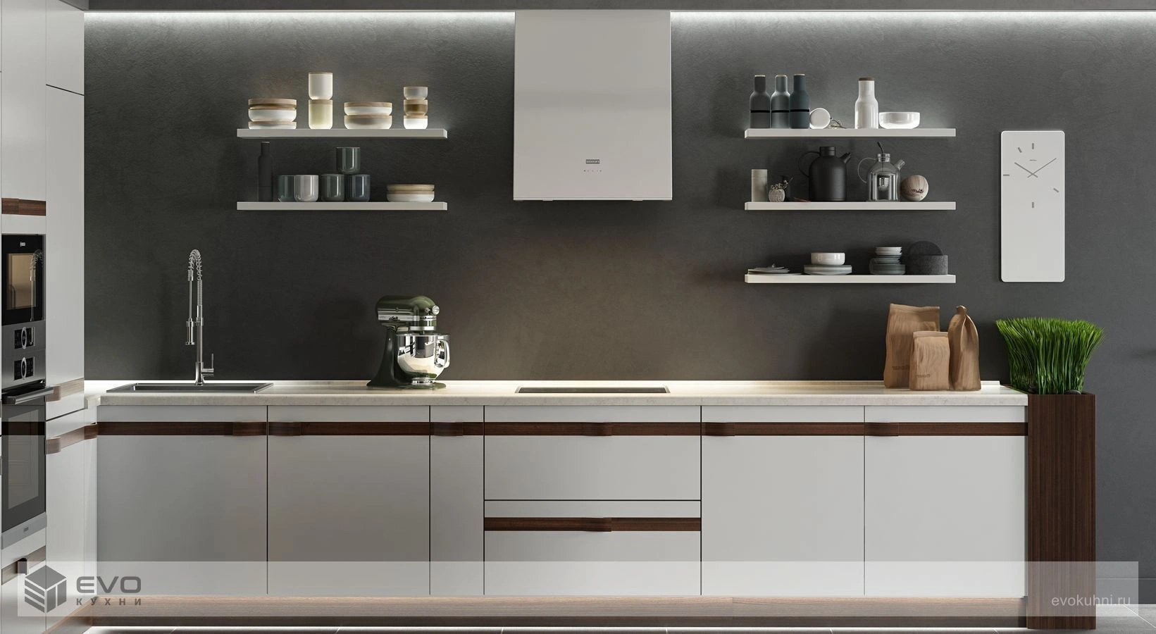 | Особенности: | Без верхних шкафов Встроенные Готовые Интегрированные ручки С встроенной техникой |