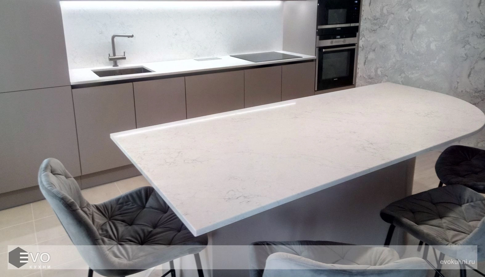 - Термоустойчивость. Столешница из кварцевого агломерата, камня Avant Quartz термостойкая, выдерживает нагревание до 500 °C.