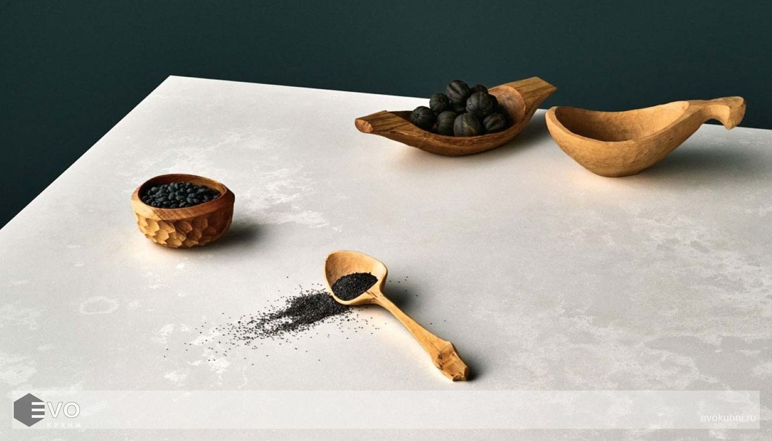 Кварцевый камень Caesarstone в виду отсутствия пор, присущих природному камню, не боится проникновения и окрашивания красящими жидкостями: вином, соком, жировыми пятнами и грязью, что делает его не заменимым при изготовлении кухонных столешниц.
