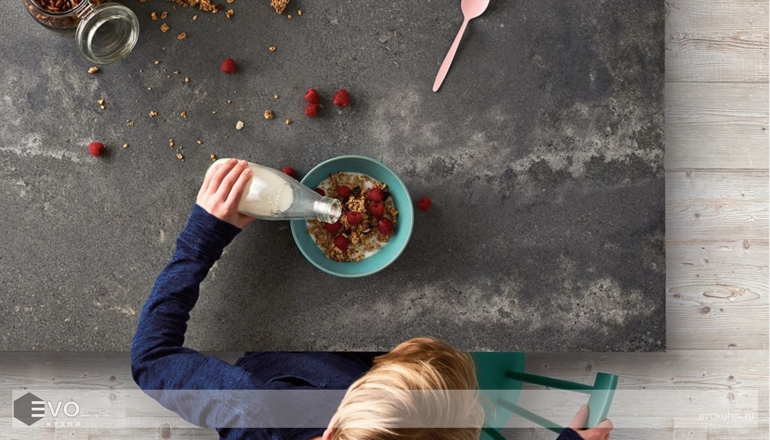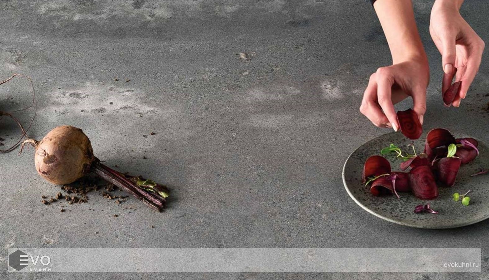 Кварцевый камень Caesarstone в виду отсутствия пор, присущих природному камню, не боится проникновения и окрашивания красящими жидкостями: вином, соком, жировыми пятнами и грязью, что делает его не заменимым при изготовлении кухонных столешниц.