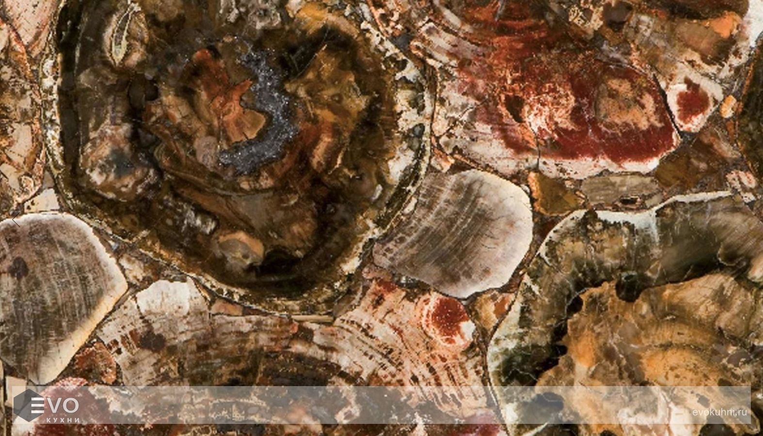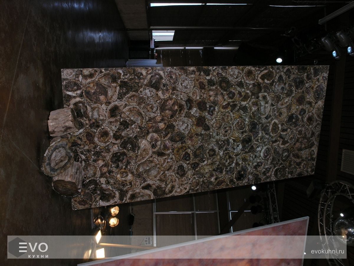 Основа внешнего вида коричневого камня Caesarstone 8330 Окаменелое дерево — настоящее окаменелое дерево. Благодаря ему в цвете камня такое богатство оттенков: красных, зеленоватых, бежевых и кофейных.