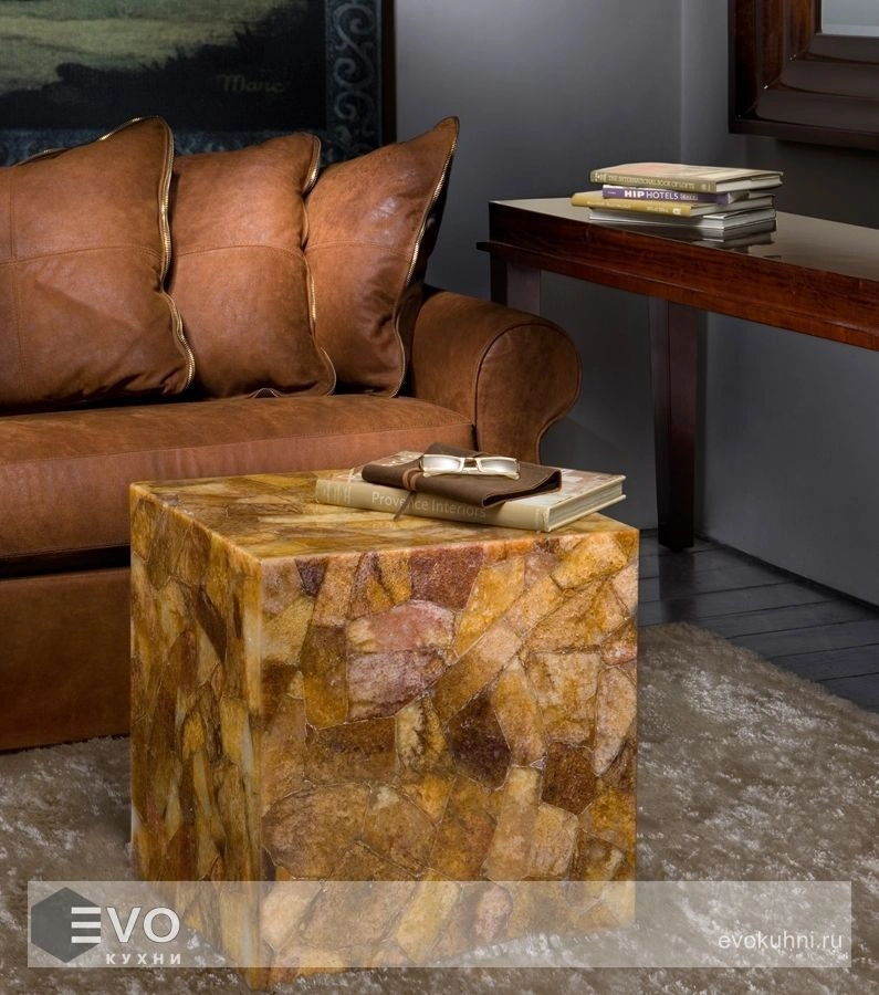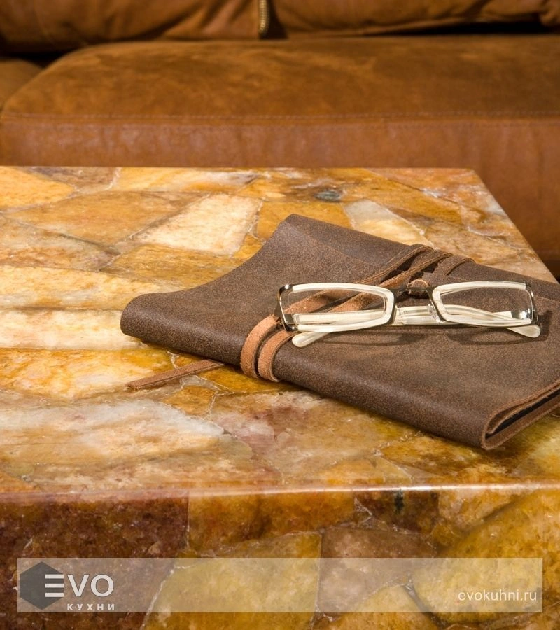 В состав камня Caesarstone 8430 Янтарный кварц входит одна из разновидностей кварца насыщенного, оранжево-медового и одновременно полупрозрачного цвета.