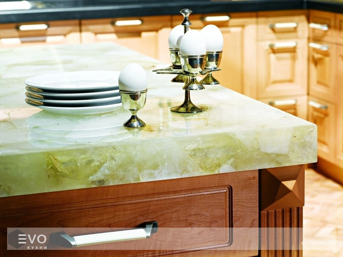 Кварцевый камень Caesarstone в виду отсутствия пор, присущих природному камню, не боится проникновения и окрашивания красящими жидкостями: вином, соком, жировыми пятнами и грязью, что делает его не заменимым при изготовлении кухонных столешниц.