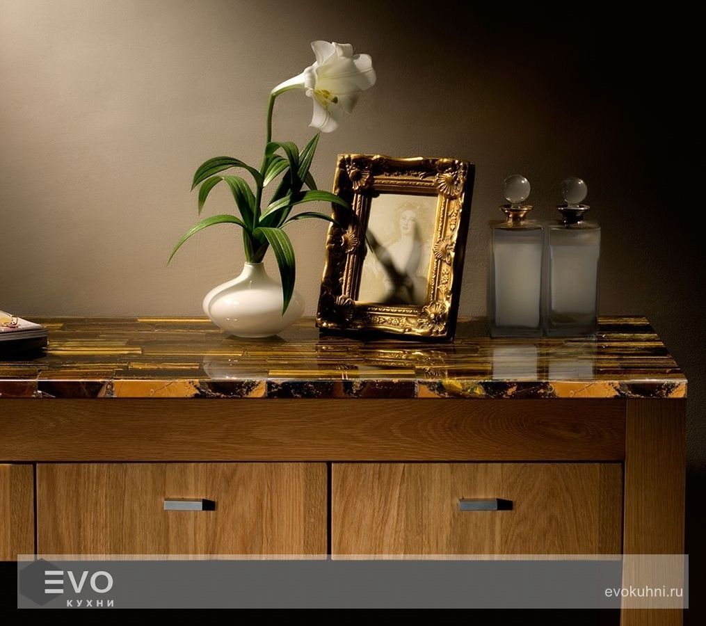 Кварцевый камень Caesarstone в виду отсутствия пор, присущих природному камню, не боится проникновения и окрашивания красящими жидкостями: вином, соком, жировыми пятнами и грязью, что делает его не заменимым при изготовлении кухонных столешниц.