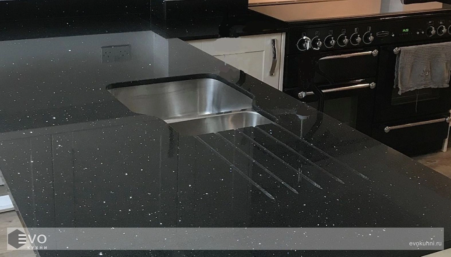 - Кварц имеет противоударные свойства, падение тяжелой вещи не причинит столешнице вреда.