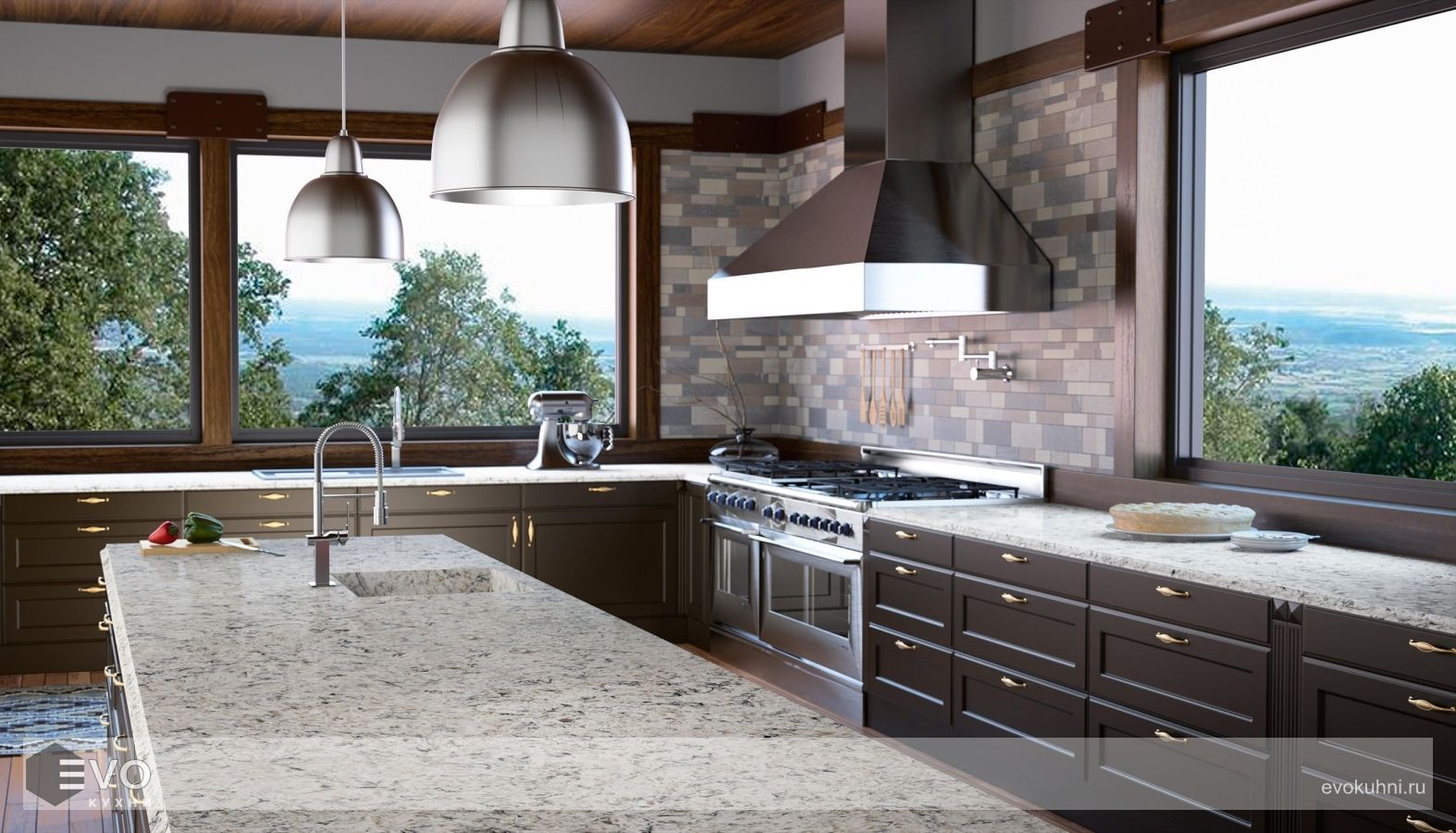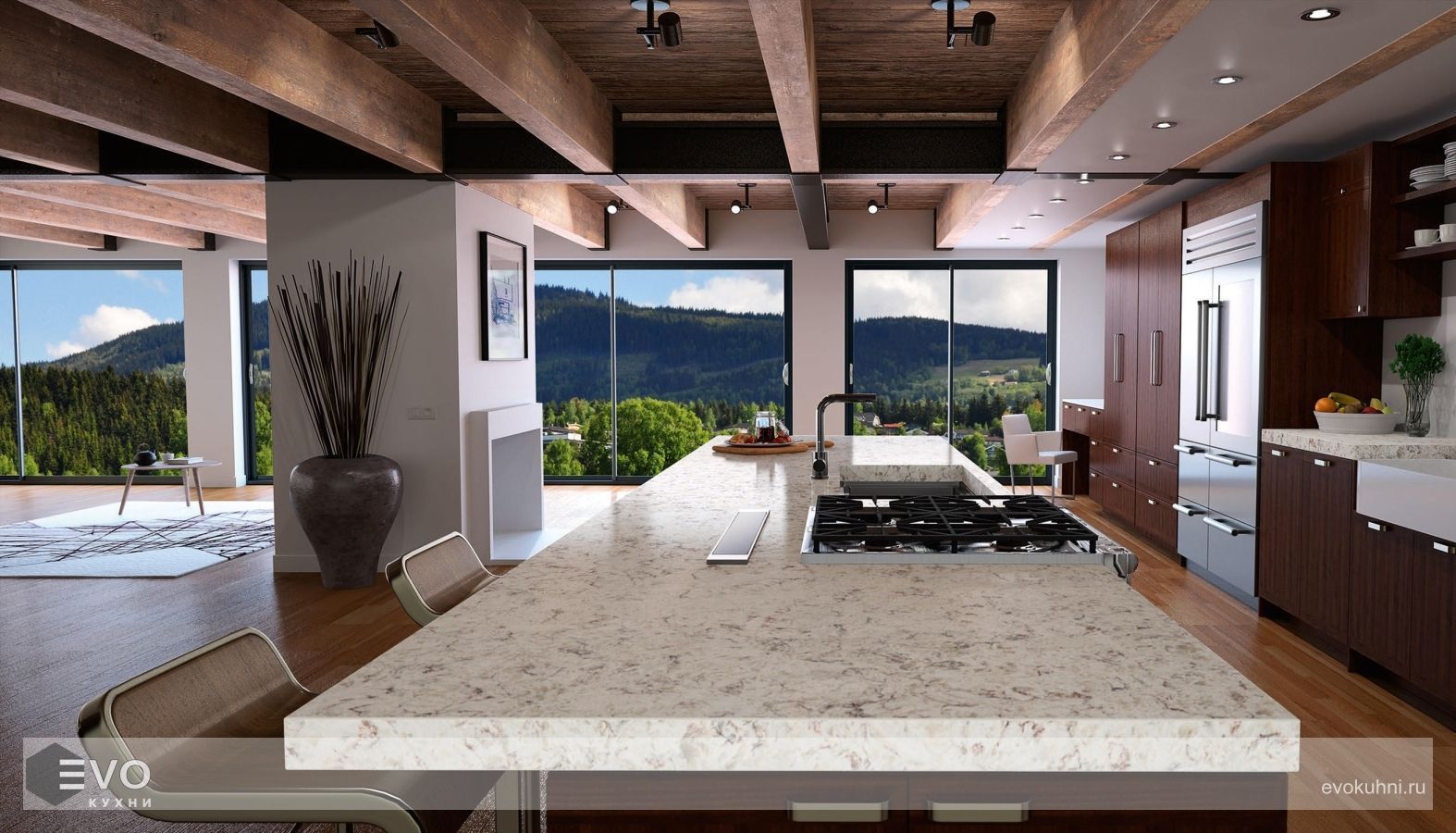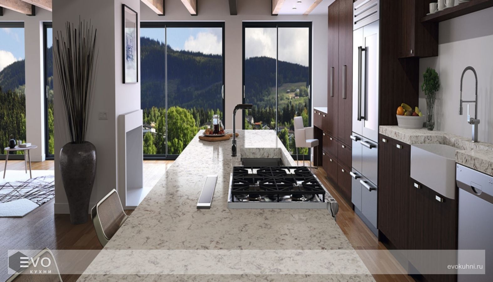 - Столешница для кухни из кварца будет очень удобна в использовании, потому что ее невозможно поцарапать ножом.