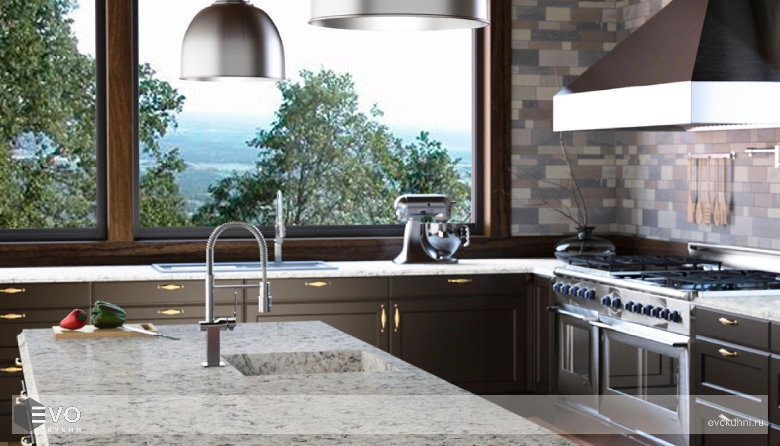 - Столешница для кухни из кварца будет очень удобна в использовании, потому что ее невозможно поцарапать ножом.