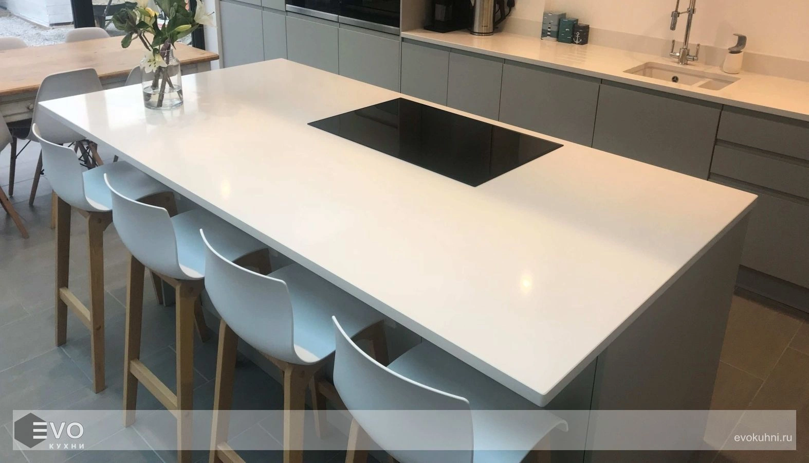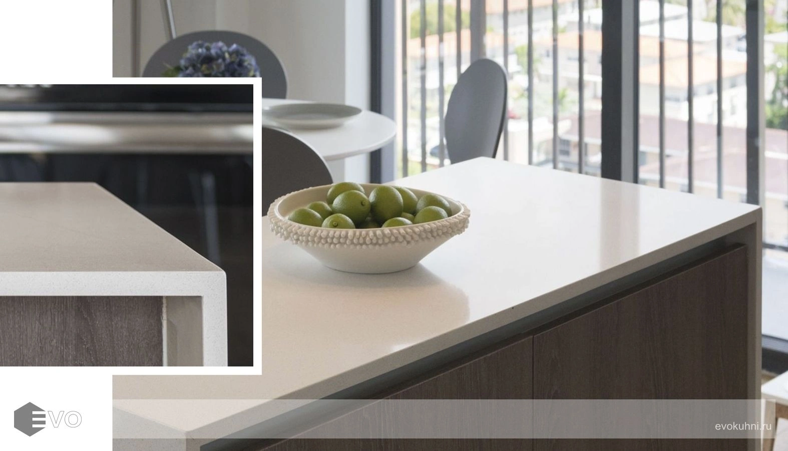 • Столешница для кухни из кварца будет очень удобна в использовании, потому что ее невозможно поцарапать ножом.