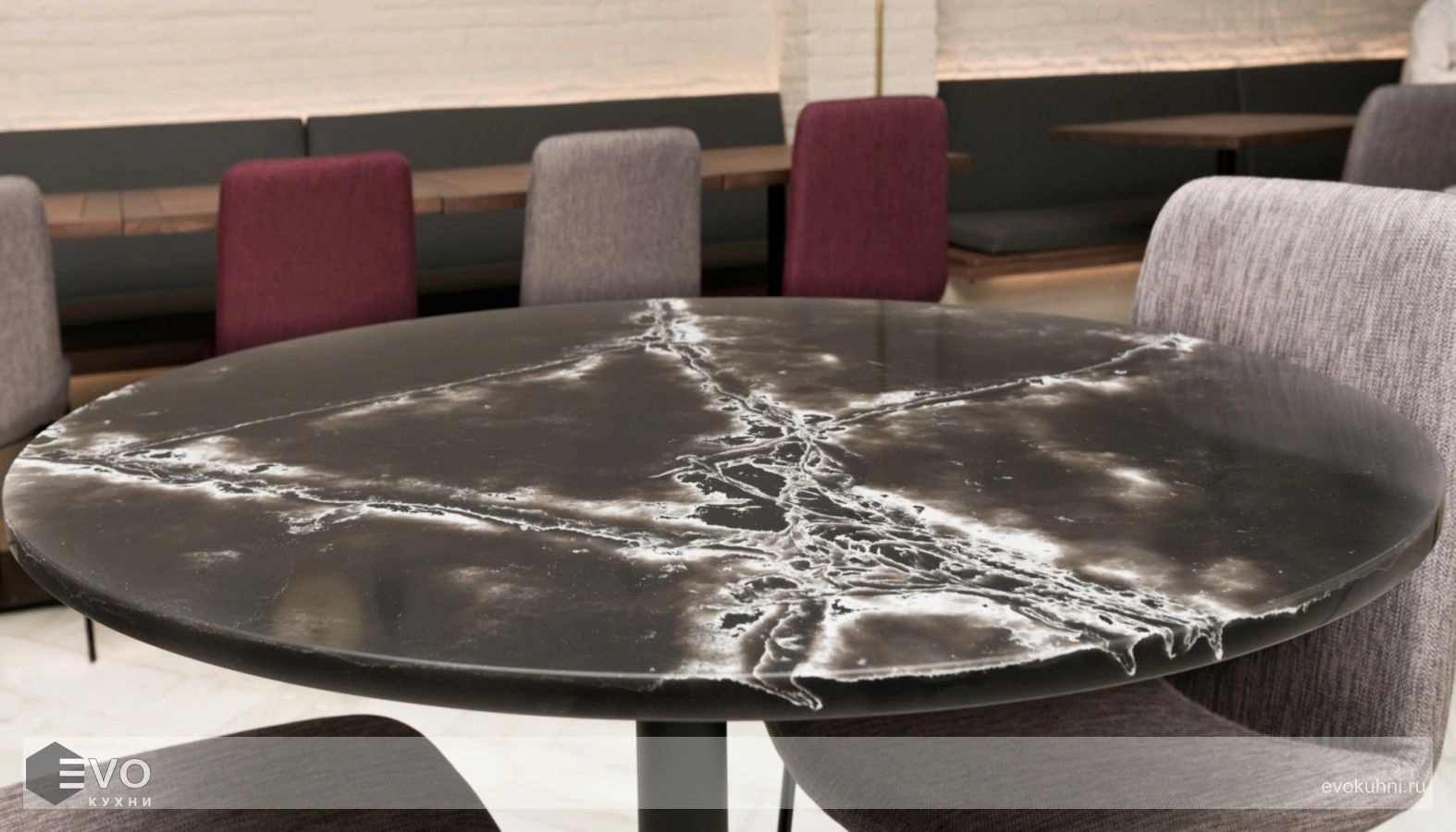 - Столешница для кухни из кварца будет очень удобна в использовании, потому что ее невозможно поцарапать ножом.