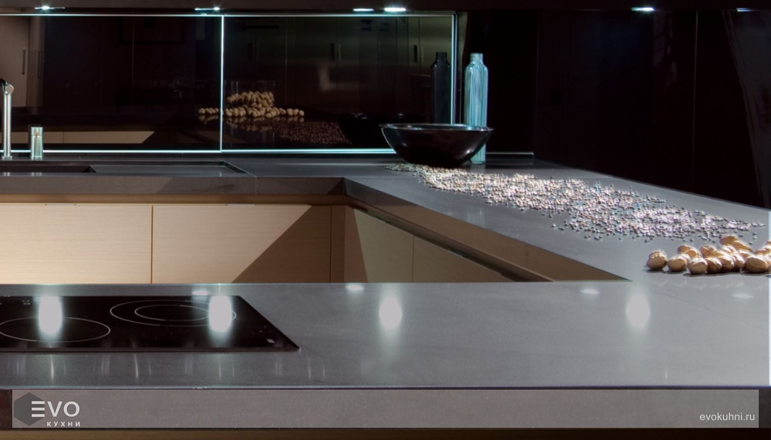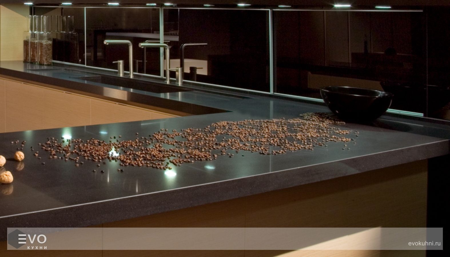 • Столешница для кухни из кварца будет очень удобна в использовании, потому что ее невозможно поцарапать ножом.